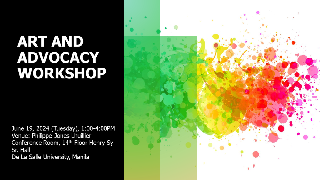 This workshop is part of the 17th DLSU Arts Congress under the supervision of the DLSU Office of the Vice President for Lasallian Mission and the Committee on National Issues and Concerns (CONIC) in partnership with Dakila and Active Vista, Inc. The Special Projects and Initiatives Coordinator is Ms. Jeanne Carmel Puertollano.